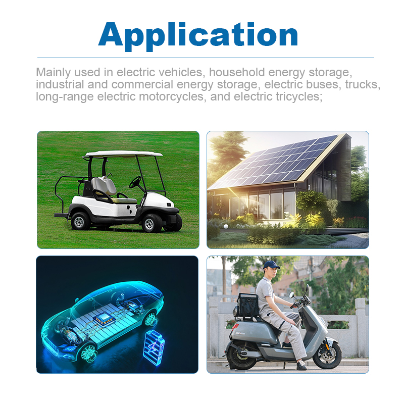 | Application | Electric vehicles, energy storage systems, AGV, solar storage, industrial equipment, and custom battery packs |