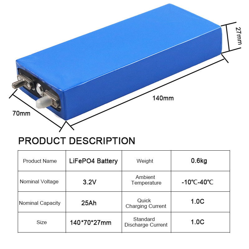 Compact & Lightweight Design: The 25Ah capacity in a small prismatic form factor allows for flexible and space-efficient battery pack designs without sacrificing power.