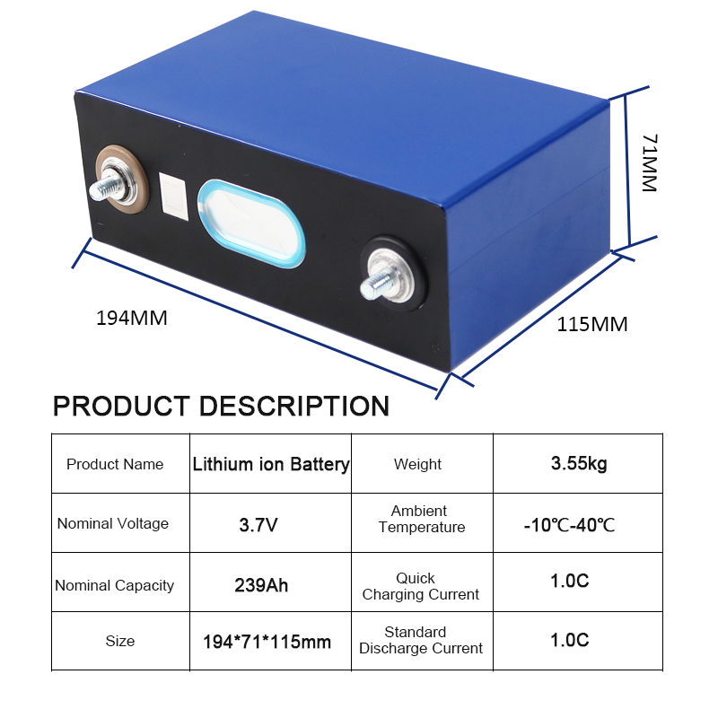 Introducing the CATL 3.7V Prismatic NCM Cell Rechargeable NMC CATL 239Ah Lithium Ion Battery for Boat, RV, and EV. This high-quality lithium-ion battery from CATL is designed to provide reliable power for a variety of applications. With a voltage of 3.7V and a capacity of 239Ah, this prismatic NCM cell battery offers long-lasting performance and durability. Whether you're powering a boat, RV, or electric vehicle, this rechargeable battery is a dependable choice. Trust CATL for all your energy storage needs.